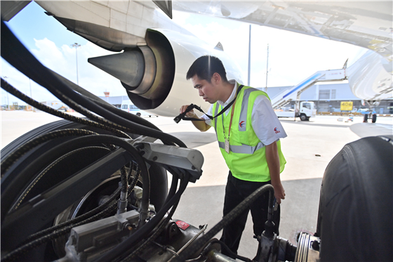 面對艱苦的工作,潘陳卻沒有什么怨言,他認(rèn)為這些是自己職業(yè)生涯歷練成長的一部分,“航班旺季每一個機務(wù)都很忙,大家都有許多工作要完成。作為一名新人,我的技術(shù)水平暫時還不能完成那些高難度的維修工作,所以這些體力活我就多承擔(dān)一些,雖然辛苦,但是只要肯干就一定會有收獲?!迸岁愡@樣說道。
