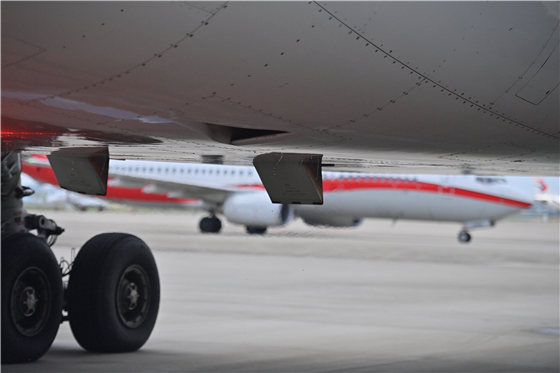 為了確保飛機能夠準(zhǔn)點準(zhǔn)時出港,裘磊提早來到了工作崗位。在首先調(diào)取查看飛機單機技術(shù)狀況后,裘磊圍繞飛機作繞機檢查,他用手電筒照明并仔細(xì)查看機翼、機身、起落架、尾翼、發(fā)動機等關(guān)鍵部位的表面及結(jié)構(gòu)情況,確認(rèn)各類電子設(shè)備、儀表儀器沒有異常。在他身旁不遠(yuǎn)處,另一位維修機務(wù)正在檢查飛機機輪的胎壓情況?!皫讉€機輪的胎壓都o(jì)k嗎?”機坪的噪音很大,裘磊不得不扯開嗓子大聲詢問。在得到肯定回答后,裘磊與當(dāng)天的航班機長確認(rèn)了飛機處于適航狀態(tài),并在放行工單和技術(shù)記錄本上簽字放行。隨著牽引車緩緩將飛機推出,裘磊揮手向航班道別,MU9979航班在7:25分準(zhǔn)時出港飛往青島膠東國際機場。