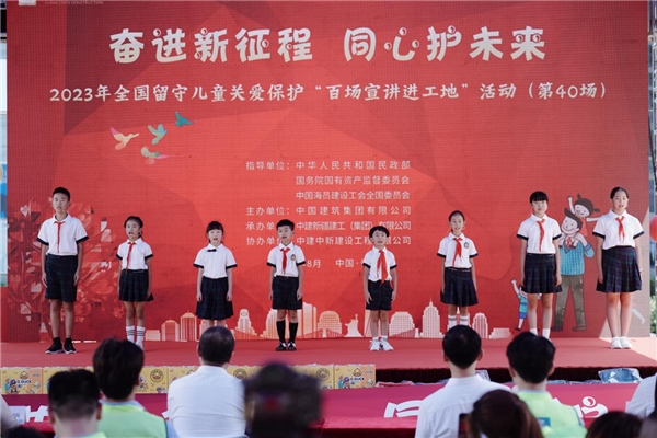 8月18日,由中華人民共和國民政部、國務(wù)院國有資產(chǎn)監(jiān)督管理委員會(huì)、中國海員建設(shè)工會(huì)全國委員會(huì)指導(dǎo),中建集團(tuán)主辦,中建新疆建工承辦,中建中新協(xié)辦的“奮進(jìn)新征程同心護(hù)未來”2023年全國留守兒童關(guān)愛保護(hù)“百場(chǎng)宣講進(jìn)工地”(第40場(chǎng))活動(dòng)在中建中新劉家下莊社區(qū)改造項(xiàng)目舉行。