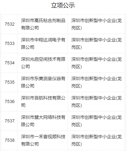 關(guān)于2022年深圳市創(chuàng)新型中小企業(yè)名單的公示