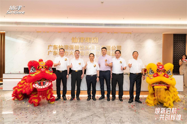 在瑞獅吐福的喜慶氣氛中,政府及行業(yè)各界嘉賓與仙津集團(tuán)領(lǐng)導(dǎo)高層,移步至揭牌儀式區(qū),松山湖黨工委委員、管委會(huì)委員黃鏡銓、松山湖管委會(huì)總經(jīng)濟(jì)師兼北部片區(qū)黨委書記陳潮暉、中國食品工業(yè)協(xié)會(huì)顧問張俊修、東莞市工商聯(lián)主席黃建平、東莞市上市公司協(xié)會(huì)會(huì)長(zhǎng)林海川,廣東仙津集團(tuán)有限公司董事長(zhǎng)鄧志華共同為仙津集團(tuán)揭牌,標(biāo)志著仙津集團(tuán)拉開嶄新序幕,走向全新征程!