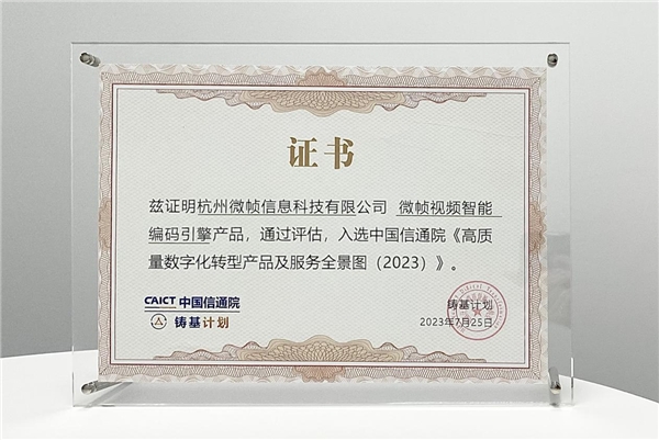 7月27日,由中國(guó)信通院主辦的“2023數(shù)字生態(tài)發(fā)展大會(huì)”暨中國(guó)信通院“鑄基計(jì)劃”年中會(huì)議在北京召開。本次大會(huì)全面總結(jié)了“鑄基計(jì)劃”上半年度工作成果,并重磅發(fā)布了《高質(zhì)量數(shù)字化轉(zhuǎn)型產(chǎn)品及服務(wù)全景圖(2023)》。微幀科技作為全球領(lǐng)先的視頻編碼及AI解決方案提供商受邀出席會(huì)議,【微幀視頻智能編碼引擎】以行業(yè)領(lǐng)先的編碼性能、不斷突破技術(shù)極限的自研能力,實(shí)力入選全景圖。