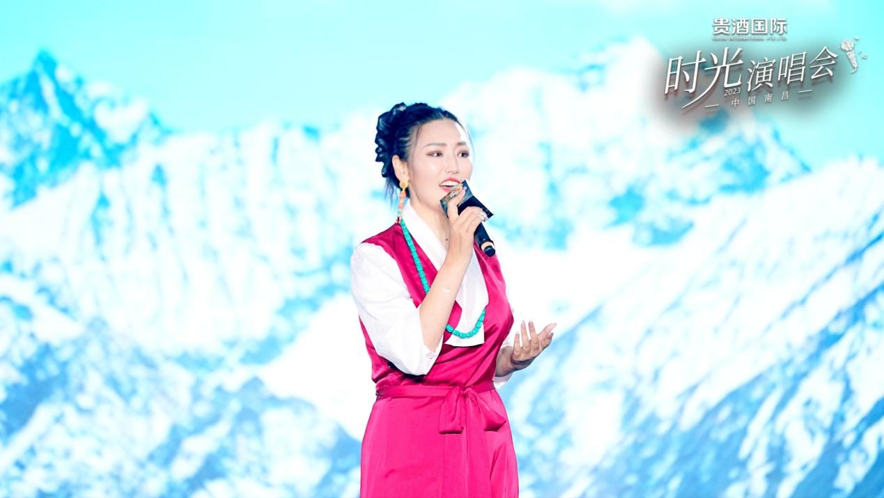舞臺(tái)上,琥珀歲月,醉心時(shí)光,音樂穿越時(shí)空,喚起記憶的波瀾。演唱會(huì)以舞蹈《青花瓷》拉開序幕,舞者手中的青花瓷瓶,配合東方神韻的輕柔舞姿,這一切仿佛傾訴著貴酒國(guó)際對(duì)傳統(tǒng)文化的傳承與熱愛,將音樂與舞蹈的融合演繹得淋漓盡致。毛一涵、劉航、莫斯?jié)M、王強(qiáng)等依次登臺(tái),用歌聲跨越時(shí)光,共同體驗(yàn)音樂與時(shí)光交織的魅力。一場(chǎng)橫跨味覺與聽覺的盛會(huì),應(yīng)和滕王閣浩瀚雄姿?!队成郊t》、《紅旗飄飄》、《青藏高原》、《秋天不回來》等經(jīng)典旋律,讓現(xiàn)場(chǎng)觀眾感受到了濃郁的中國(guó)紅色文化與江西文化的底蘊(yùn)。觀眾們仿佛穿越時(shí)光,重溫那些難忘的年華,共同感懷著芳華歲月的美好回憶。