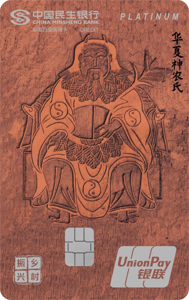 該卡首次采用民生銀行定點(diǎn)幫扶縣——河南省滑縣國(guó)家級(jí)非遺木版年畫為版面,卡面以華夏神農(nóng)氏為主形象,形象地描繪出農(nóng)耕文化和民族風(fēng)情,展現(xiàn)了中華傳統(tǒng)美術(shù)工藝,為金融機(jī)構(gòu)助力鄉(xiāng)村振興又添碩果。
