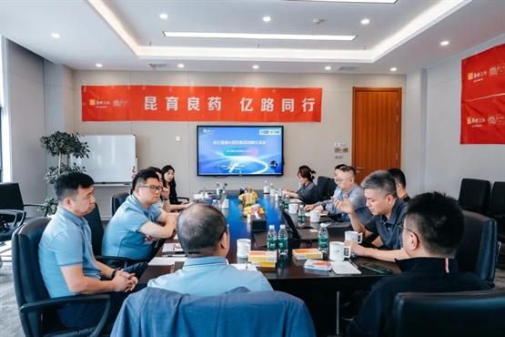 7月14日,全億健康產(chǎn)業(yè)集團(tuán)CEO萬(wàn)明治、執(zhí)行副總裁賀高華、副總裁孫磊率全億健康管理團(tuán)隊(duì)一行赴昆藥集團(tuán)股份有限公司參觀交流。昆藥集團(tuán)股份有限公司黨委書(shū)記、副董事長(zhǎng)顏煒,昆藥營(yíng)銷(xiāo)公司助理總裁鄧年虎攜一眾公司高管熱情接待來(lái)訪一行。