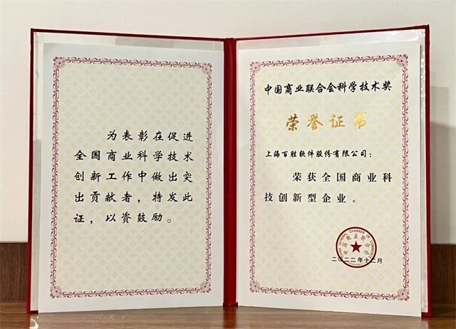經(jīng)過中國商業(yè)聯(lián)合會評審專家組的嚴(yán)格評審,百勝軟件憑借在零售領(lǐng)域的諸多技術(shù)創(chuàng)新和推動行業(yè)發(fā)展的突出貢獻(xiàn),榮膺“2022年全國商業(yè)科技創(chuàng)新型企業(yè)”,公司實力再獲權(quán)威認(rèn)可。