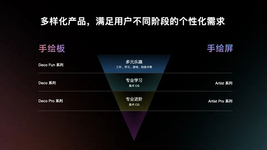 目前,XPPen 共有 2 大品類,5 大系列產(chǎn)品,包括數(shù)位板類的 Deco Fun、Deco、Deco Pro 系列及數(shù)位屏類 Artist、Artist Pro 系列產(chǎn)品。其中,Deco Fun 產(chǎn)品線系列面向多元樂(lè)趣用戶;Deco 和 Artist 產(chǎn)品線系列面向?qū)I(yè)學(xué)習(xí)用戶;Deco Pro 和 Artist Pro 產(chǎn)品線系列面向?qū)I(yè)進(jìn)階用戶。全新的產(chǎn)品布局,可針對(duì)不同成長(zhǎng)階段的用戶需求,打造從興趣入門(mén)到專業(yè)學(xué)習(xí)再到專業(yè)進(jìn)階的產(chǎn)品矩陣。