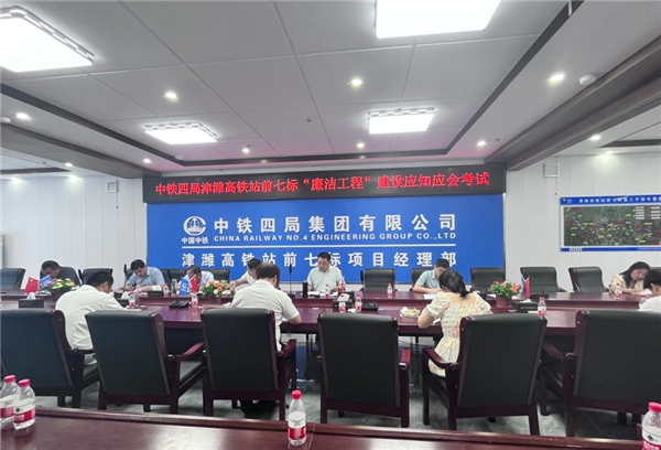 為進(jìn)一步增強(qiáng)項(xiàng)目全員廉潔自律意識,積極響應(yīng)津?yàn)H高鐵“廉潔工程”建設(shè)工作全面開展,7月24日,中鐵四局一公司津?yàn)H高鐵站前七標(biāo)項(xiàng)目黨總支組織項(xiàng)目經(jīng)理部全體員工開展“廉潔工程”建設(shè)應(yīng)知應(yīng)會知識測試活動,以考促學(xué),以學(xué)促干,提升項(xiàng)目全體員工“廉潔工程”建設(shè)工作的主動性、積極性。