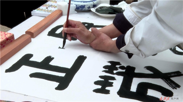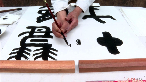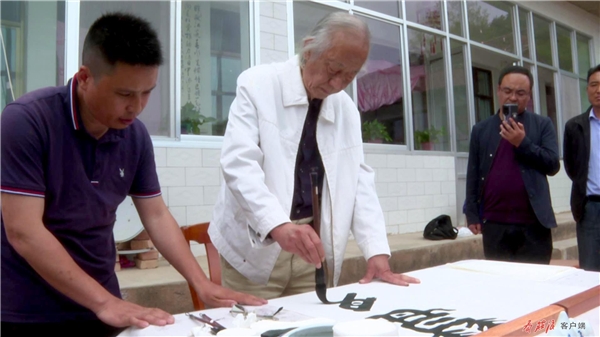 在農(nóng)家小院,閻正正在聚精會神地?fù)]毫潑墨,他在筆墨的運(yùn)用上別出心裁、匠心獨(dú)運(yùn),流暢的線條蒼勁有力,書法作品淋漓盡致地展現(xiàn)于尺幅之上。談起他創(chuàng)作的靈感,閻正說,“莊浪歷史悠久、文化底蘊(yùn)深厚、森林植被覆蓋率高,儼然一幅天然山水畫。莊浪縣云崖寺自然風(fēng)光秀麗,石窟藝術(shù)精美,有遠(yuǎn)山、有水庫、有寺廟,它完全具備中國畫的每一個(gè)條件?!?/p>