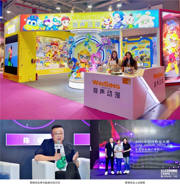 ? 6月28日至30日,詠聲動漫攜旗下豬豬俠、百變校巴、詠玩潮·羊圓圓等IP空降2023全球授權(quán)展·上海站(LEC),兩大全新IP《喵能戰(zhàn)士》《反斗聯(lián)萌》首次亮相,吸引眾多企業(yè)現(xiàn)場咨詢。展會期間,詠聲動漫副總裁、國際授權(quán)業(yè)協(xié)會大中華區(qū)顧問委員陳曉先生作為“2023年授權(quán)業(yè)論壇——圓桌對話”嘉賓,和多位行業(yè)大咖一起探討消費復(fù)蘇的當(dāng)下,授權(quán)商與被授權(quán)商該如何應(yīng)對急速變換的市場趨勢,現(xiàn)場分享實戰(zhàn)經(jīng)驗,共同促進(jìn)行業(yè)發(fā)展;此后,陳曉先生受邀出席 “2023中國授權(quán)業(yè)大獎”頒獎典禮,上臺為“年度授權(quán)推廣項目”頒發(fā)獎項。