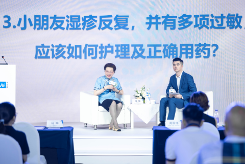 馬琳教授現(xiàn)場答疑左:北京兒童醫(yī)院皮膚科名譽(yù)主任馬琳教授;右:適樂膚(中國)醫(yī)學(xué)經(jīng)理艾云飛先生