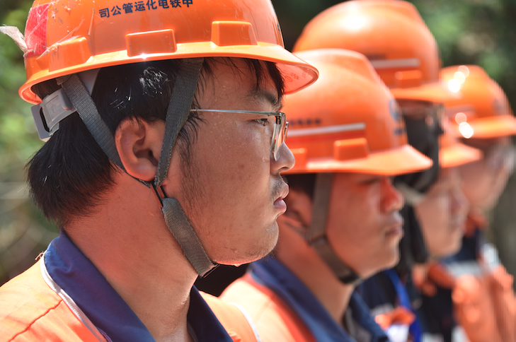 11點(diǎn)55分,封鎖命令一下,劉冉一馬當(dāng)先帶著大家沖到了線路上。由于鐵路線兩邊幾乎沒有任何遮陽(yáng)的物體,經(jīng)過一上午的暴曬,鐵路線上的溫度已經(jīng)高達(dá)49.8℃,而現(xiàn)在頭頂上的太陽(yáng)任然不斷地給鐵路上的道砟加熱,此時(shí)的鐵路線上,就像是一個(gè)巨大的烤箱。劉冉看著遠(yuǎn)處地面上的熱浪,拽了拽濕透后緊貼后背的衣服,招呼著后面的員工“大家動(dòng)作快點(diǎn),天窗只有109分鐘,不僅要檢修500米的設(shè)備,還要處理3處缺陷?!?/p>