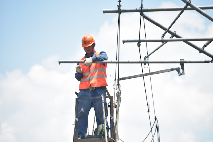終于等到車梯豎起來(lái),“扶好車梯!”剛囑咐好輔助人員,劉冉就帶著小李竄到了車梯上,現(xiàn)在的他只想早點(diǎn)干完活,早點(diǎn)休息??蓜傞_始干活沒一會(huì),劉冉看著腕臂上動(dòng)作又慢又變扭的小李就來(lái)了脾氣,“墨跡什么呢,身體貼在腕臂上干,搞快點(diǎn)!”“劉工,主要是這腕臂太燙了?!毙±詈芪慕忉尩?。不光線路上熱,此時(shí)支柱上的金屬設(shè)備因?yàn)闀窳艘簧衔?#xff0c;溫度已經(jīng)超過50℃,帶著手套還感覺不出來(lái),但隔著一層薄衣服的話就燙的難受。“你站車梯框里干,我過去?!笨吹皆O(shè)備溫度都這么高,此時(shí)的劉冉更擔(dān)心大家的身體,可千萬(wàn)別中暑了啊。