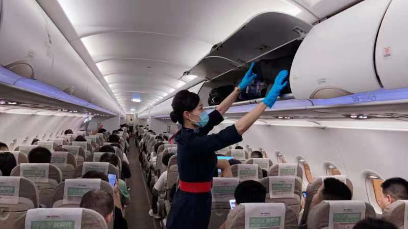 暑運(yùn)期間最大的特點就是客座率高,東航近期日均客座率都在80%左右;此外就是天氣復(fù)雜多變。相較于平日,在航前準(zhǔn)備過程中,金智音和乘務(wù)組們近期會格外關(guān)注目的地天氣情況、客座率、旅客構(gòu)成,特別是行李托運(yùn)情況等。“客座率上來了,上機(jī)的行李自然就多了。為了妥善放置旅客的行李,我們一方面會提前在保障群里同地面緊密溝通監(jiān)控行李數(shù)量,一方面也會在航前準(zhǔn)備會上對乘務(wù)員們擺放行李提前進(jìn)行詳細(xì)部署?!苯鹬且粢矔跈C(jī)艙門口細(xì)心觀察,當(dāng)看到旅客行李箱較多,她還會以機(jī)上廣播的方式做好提醒,建議并幫助旅客將小型背包放置在座椅擋桿下方,確保每件行李都能放置妥善。