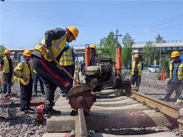 上午8時許,隨著駐站聯(lián)絡員精準的天窗施工報點后,上、下行線共200余名作業(yè)人員迅速上道,開始鋸軌、清除既有線枕木頭及枕木盒道碴、整平既有道床、撥移既有線路與預鋪線路連接等工作,并在線路撥移到位后,迅速進行鋼軌焊接、上碴整道、大機搗固、精調等作業(yè)。隨后,工務檢查軌道靜態(tài)幾何尺寸,并進行電氣信號聯(lián)鎖試驗,于中午12:30分左右完成施工,恢復線路。為確保營業(yè)線施工安全質量進度全面受控,項目部超前謀劃,統(tǒng)籌組織,突出關鍵環(huán)節(jié)和重點工序,從資源配置、方案優(yōu)化、安全質量等方面入手,明確責任分工,優(yōu)化組織設計,動態(tài)跟蹤調整,并嚴格按照鐵路部門有關文件要求設置封鎖及慢行防護,最終圓滿完成了撥接施工任務。