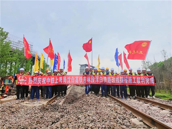 5月25日,經過200多名建設者連續(xù)4個多小時的奮戰(zhàn),由中鐵上海工程局承建的沈白高鐵吉林段既有渾白鐵路改線撥接施工順利完成,改移線路成功接入八寶站,形成了新建白山東站在北、渾白線在南的合理布局。下午13:22分左右,撥接后首次46555次貨車順利從長崗隧道駛出。