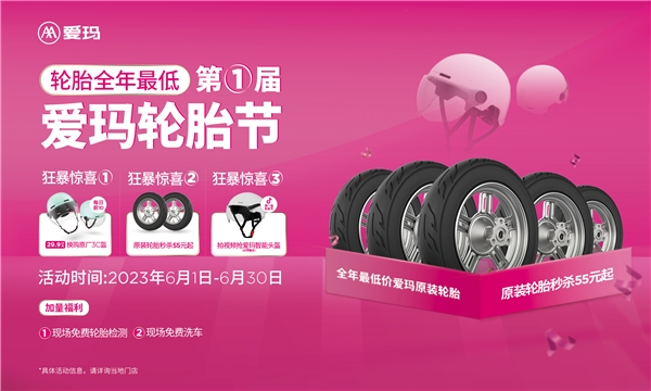 此次“愛瑪輪胎節(jié)”是電動車行業(yè)首個輪胎節(jié),同時更是以輪胎為主題,將電動車的售后服務提升到更高的水準,為用戶帶來更好的騎行安全、騎行體驗和服務體驗。低價換購輪胎、頭盔大換購等全品類福利的持續(xù)放送,在6月的“愛瑪輪胎節(jié)”活動期間掀起更多電動車用戶火熱參與的人氣高潮!