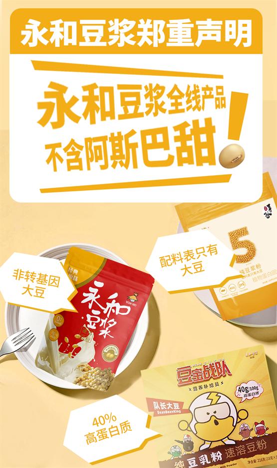 不含阿斯巴甜!永和食品的鄭重聲明給了消費者一顆定心丸。40年品質(zhì)經(jīng)營,永和食品以其兼具營養(yǎng)與口感的豆?jié){粉產(chǎn)品,打造健康飲品,掀起清涼一夏。