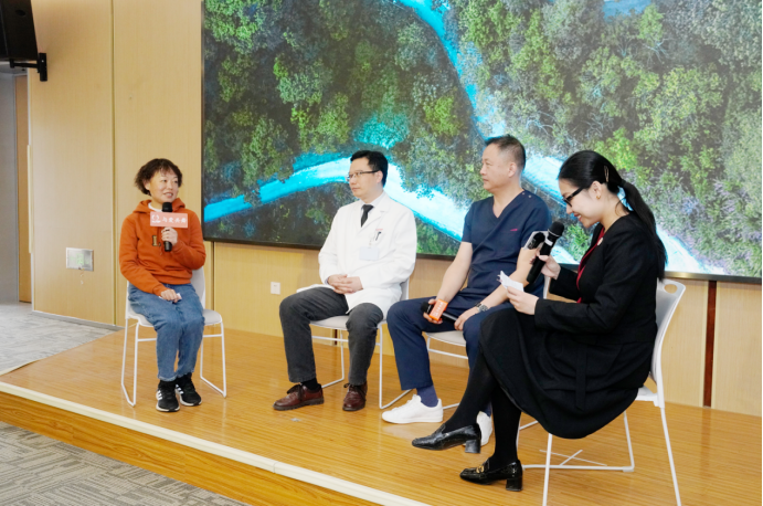 其中的芙蓉女士從四川遠道而來,與兩位醫(yī)學大咖和主持人圍坐在一起,現場分享了自己患病以來的心路歷程和診療經過,共同探討了內(科)外(科)兼修實現長期生存之道的經驗與思路等話題。