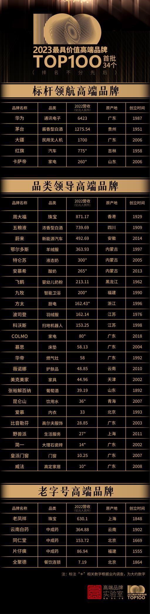 5月11日,由中國公務(wù)航空集團(tuán)獨(dú)家冠名的“2023最具價(jià)值高端品牌TOP100”榜單正式發(fā)布。這份號(hào)稱“國內(nèi)首家”的榜單上,茅臺(tái)、華為、卡薩帝、紅旗、慕思、飛鶴等34個(gè)品牌進(jìn)入了TOP100首批名單。