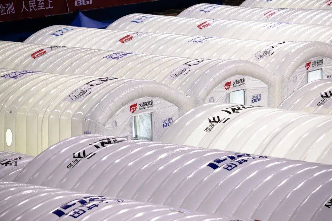 為快速響應(yīng)國內(nèi)外抗疫需求,華大基因和同濟大學(xué)、易托邦聯(lián)合打造的氣膜“火眼”實驗室