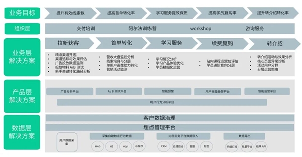 業(yè)務(wù)層:神策數(shù)據(jù)擁有豐富的教育行業(yè)交付經(jīng)驗(yàn),現(xiàn)已服務(wù)百余家知名教培企業(yè),能夠充分理解教培業(yè)務(wù),為企業(yè)提供個性化、數(shù)字化發(fā)展規(guī)劃與支持。
