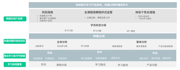 教培機(jī)構(gòu)的口碑依賴于學(xué)員對課程服務(wù)的評價,因此,基于學(xué)習(xí)主體與客體的全面分析,是改進(jìn)課程、驅(qū)動學(xué)習(xí)產(chǎn)品體驗(yàn)升級的重要依據(jù)。