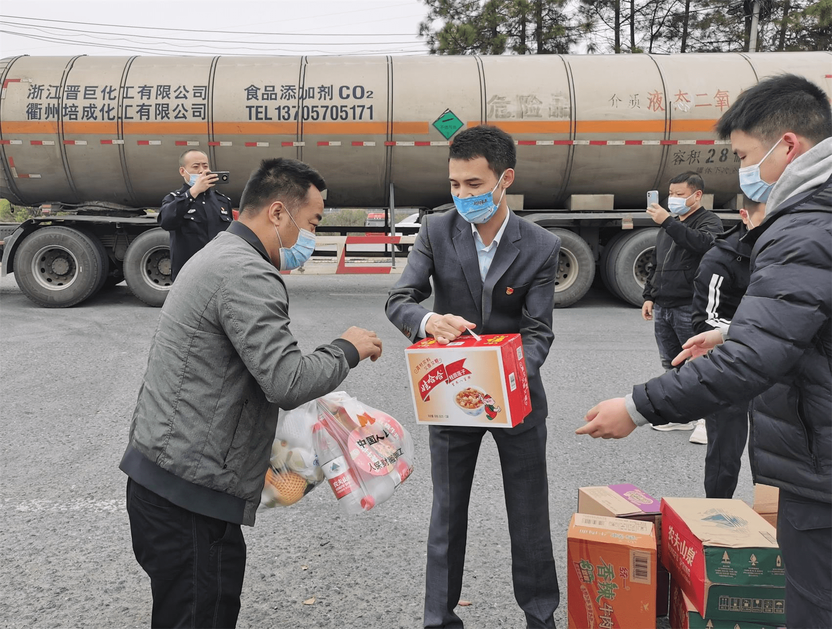 全市系統(tǒng)各分支機(jī)構(gòu)積極為抗疫工作捐款捐物。衢江支公司總經(jīng)理肖生濤與衢江交警大隊(duì)主要負(fù)責(zé)人赴部分重點(diǎn)交通管控卡口,為正在執(zhí)勤的民警輔警及50多位受困衢州的外地司機(jī)送去多種食物和酒精、噴壺防疫物資,向奮戰(zhàn)在疫情防控一線的交警人員表達(dá)關(guān)愛和支持。江山支公司全體員工發(fā)起 “抗擊疫情愛心捐款”8000元,交到江山市慈善總會,用于購置疫情防控物資。