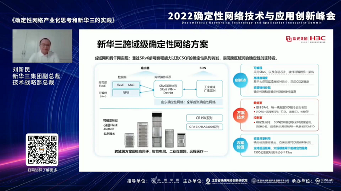 近日,由江蘇省未來網(wǎng)絡創(chuàng)新研究院、南京未來網(wǎng)絡產(chǎn)業(yè)創(chuàng)新有限公司主辦,SDNLAB承辦的“2022確定性網(wǎng)絡技術與應用創(chuàng)新峰會”召開,紫光股份旗下新華三集團應邀參會并分享了確定性網(wǎng)絡的產(chǎn)業(yè)化思考以及新華三應用實踐,展現(xiàn)了新華三未來網(wǎng)絡演進與應用上的創(chuàng)新實力和最新進展。