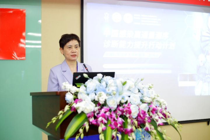 中國(guó)科學(xué)技術(shù)大學(xué)附屬第一醫(yī)院感染病院院長(zhǎng)張良明在致辭中從中國(guó)科學(xué)技術(shù)大學(xué)附屬第一醫(yī)院感染病院的歷史講起,自1955年起至今,已發(fā)展成為一所集醫(yī)療、教學(xué)、科研、預(yù)防、保健為一體的??漆t(yī)院。作為感染性疾病??漆t(yī)院,未來(lái)也將繼續(xù)為全市醫(yī)學(xué)檢驗(yàn)?zāi)芰Φ奶嵘暙I(xiàn)力量。他表示,希望通過(guò)此次線下培訓(xùn)幫助各位學(xué)員更好更快地了解并運(yùn)用mNGS,從而有效實(shí)現(xiàn)mNGS檢測(cè)技術(shù)本地化的應(yīng)用價(jià)值。