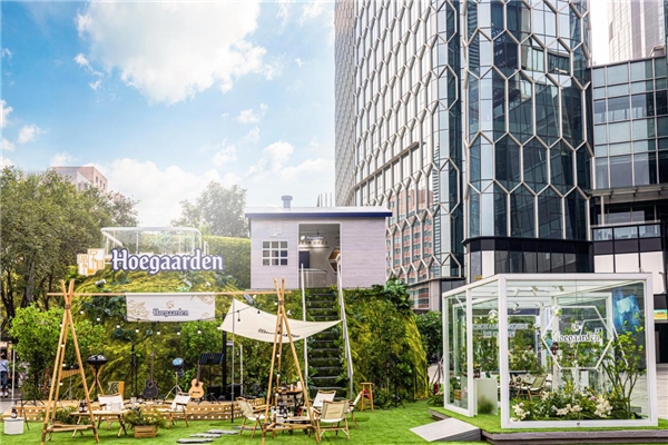 從旋轉(zhuǎn)樓梯去往山腰的金獎(jiǎng)木屋,在微風(fēng)細(xì)雨的自然之聲中沉浸式感受福佳白啤的金獎(jiǎng)實(shí)力,領(lǐng)取六棱杯便可品鑒福佳釀造原料的獨(dú)特風(fēng)味,感受芫荽籽的辛香與橙皮的果香。