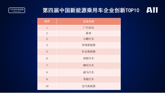 中國(guó)新能源乘用車企業(yè)創(chuàng)新TOP10