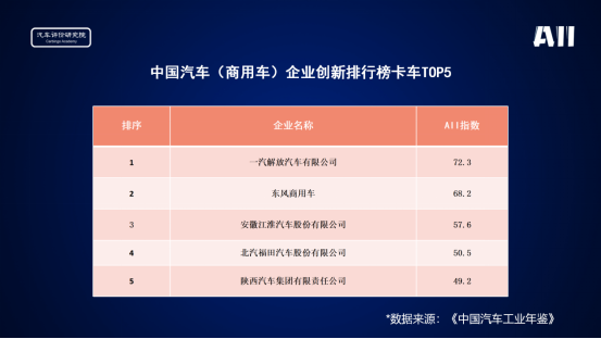 中國(guó)汽車(商用車)企業(yè)創(chuàng)新排行榜卡車TOP5