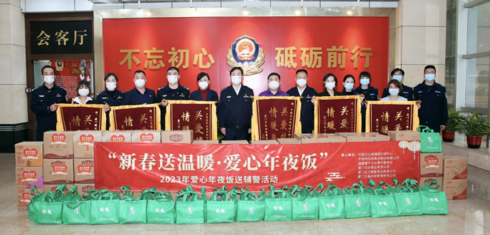 由中國企業(yè)報(bào)福建公司發(fā)起的“2023愛心年夜飯送輔警活動(dòng)”第三個(gè)中國人民警察節(jié)當(dāng)天在廈門市公安局大院隆重舉行,來自羅普特科技集團(tuán)股份有限公司、福建重宇合眾律師事務(wù)所、廈門綠進(jìn)食品有限公司、廈門達(dá)川臻富食品有限公司、廈門見福連鎖管理有限公司等愛心企業(yè)為廈門輔警支隊(duì)一線輔警送來了節(jié)日的問候和預(yù)制菜、油、果汁等愛心年夜飯“大禮包”,以及口罩等防疫物資,向奮斗在在一線守護(hù)廈門城市平安的執(zhí)勤輔警表示感激和敬意。