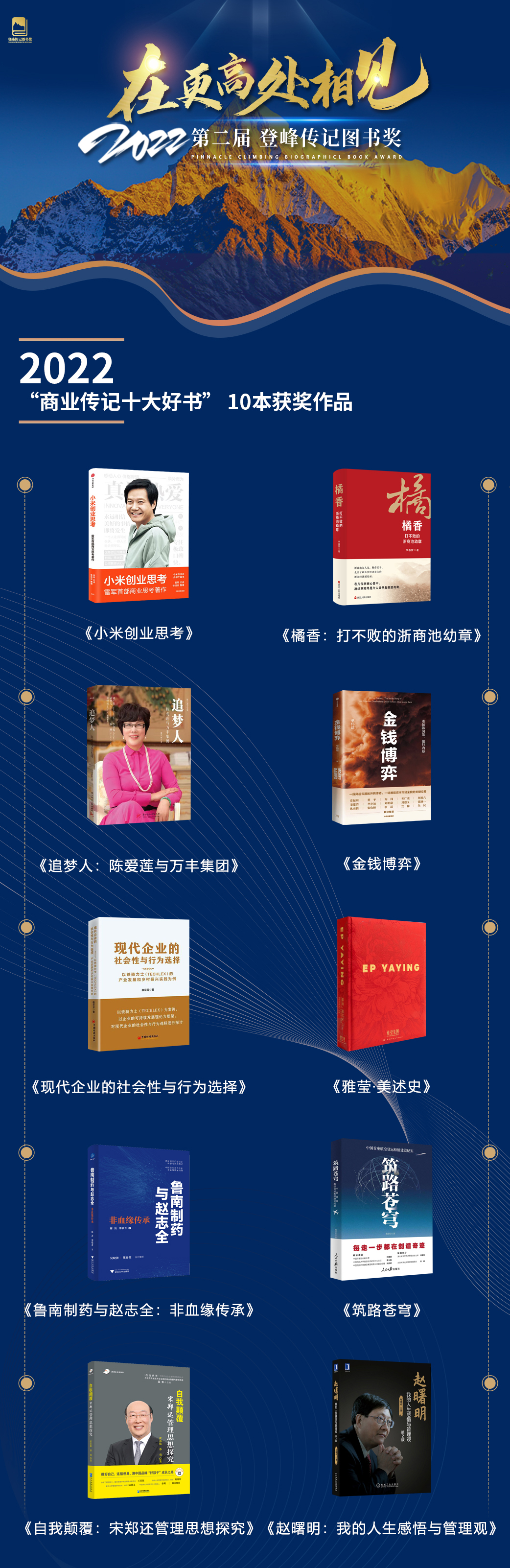 感謝社會各界人士對本次評選活動支持,請持續(xù)關(guān)注2023年第三屆“登峰傳記圖書獎”!