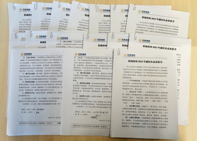 該公司紀(jì)委從發(fā)布簽訂《招商漳州2023年廉潔從業(yè)承諾書》后,黨委領(lǐng)導(dǎo)班子成員帶頭簽訂,11個(gè)部門和下屬企業(yè)黨支部,積極組織黨員干部員工認(rèn)真學(xué)習(xí)承諾內(nèi)容,實(shí)現(xiàn)210位在崗干部員工人人參與、全員覆蓋,進(jìn)一步強(qiáng)化自覺遵守廉潔從業(yè)規(guī)定的思想自覺和行動(dòng)自覺。
