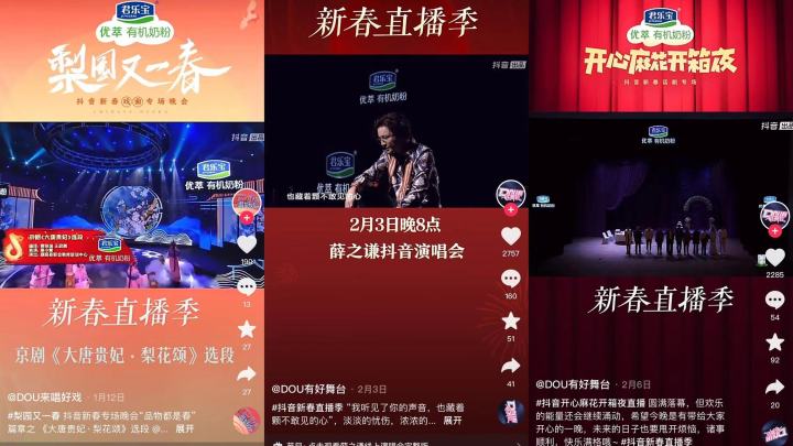 同樣是在今年CNY活動期間,優(yōu)萃有機(jī)奶粉合作了《梨園又一春》、《薛之謙演唱會》、《開心麻花開箱夜》等自帶關(guān)注度、話題性和高熱曝光的直播項(xiàng)目,這其中涵蓋戲曲、音樂、小品等多類型,滿足了不同圈層受眾的內(nèi)容需求。無論是別致氣韻的戲曲盛宴、讓人捧腹的喜劇專場還是高品質(zhì)音樂沉浸表演,都將春節(jié)氛圍拉至高潮,而借勢節(jié)目本身的影響力和傳播力,優(yōu)萃有機(jī)奶粉在收獲不俗流量的同時(shí),再一次將“讓小寶寶先吃上有機(jī)食品”的品牌信息進(jìn)行了生動植入。