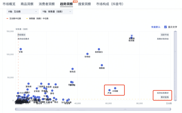 很多品牌在投放時(shí)才想到標(biāo)簽,但基于「云創(chuàng)行業(yè)標(biāo)簽」的行業(yè)視角,品牌可以深入了解消費(fèi)者需求和市場(chǎng)趨勢(shì),在產(chǎn)品賣點(diǎn)、功效、成分、使用場(chǎng)景等更細(xì)的維度做更深度洞察,比如了解消費(fèi)者對(duì)某些成分的偏好和需求,挖掘產(chǎn)品的優(yōu)點(diǎn)和優(yōu)勢(shì),以此作為關(guān)鍵詞進(jìn)行推廣。通過(guò)這種方式,品牌可以做出更明智的營(yíng)銷決策,選對(duì)賽道、做好內(nèi)容。