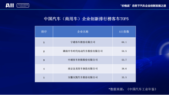 中國汽車(商用車)企業(yè)創(chuàng)新排行榜客車TOP5