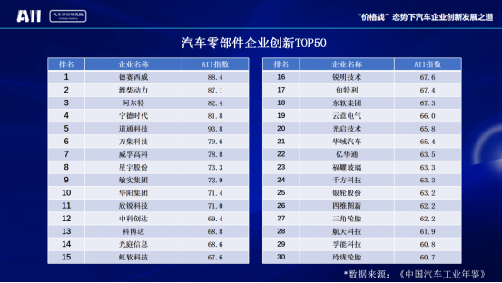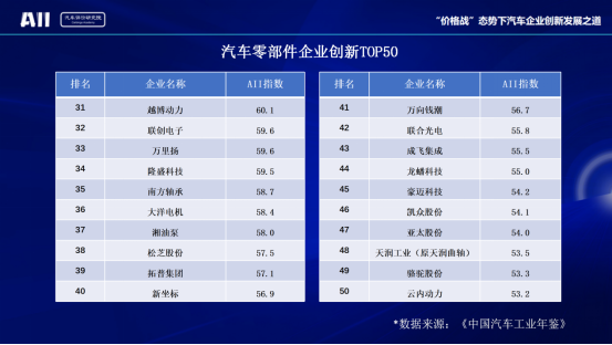中國汽車(零部件)企業(yè)創(chuàng)新TOP50