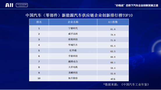 中國汽車(零部件)新能源汽車供應(yīng)鏈企業(yè)創(chuàng)新排行榜TOP10