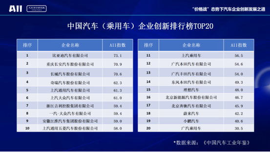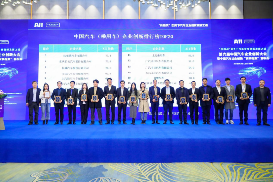 中國汽車(乘用車)企業(yè)創(chuàng)新排行榜TOP20