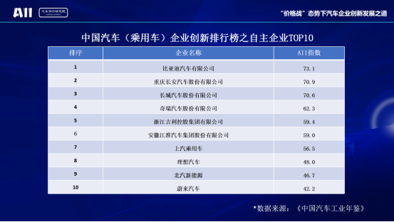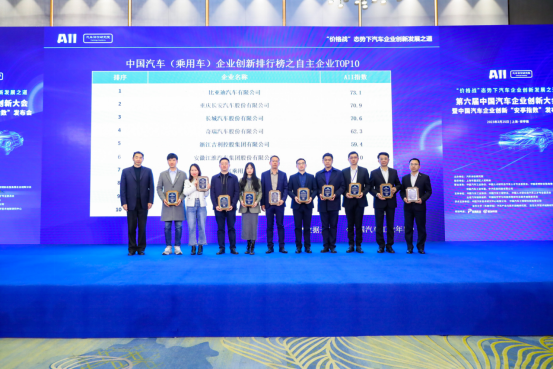 中國汽車(乘用車)企業(yè)創(chuàng)新排行榜之自主企業(yè)TOP10