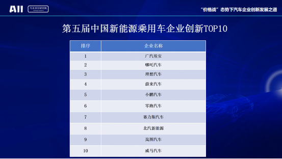 中國新能源乘用車企業(yè)創(chuàng)新TOP10