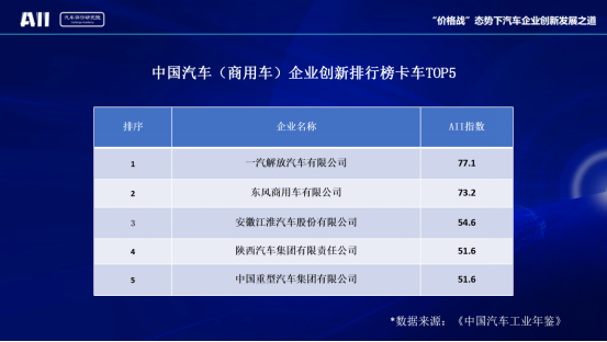中國汽車(商用車)企業(yè)創(chuàng)新排行榜卡車TOP5