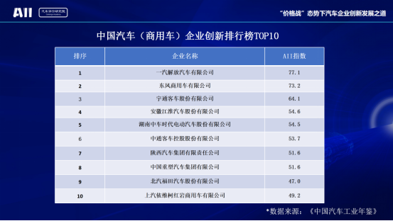 中國汽車(商用車)企業(yè)創(chuàng)新排行榜TOP10