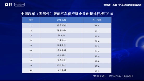 中國汽車(零部件)智能汽車供應(yīng)鏈企業(yè)創(chuàng)新排行榜TOP10