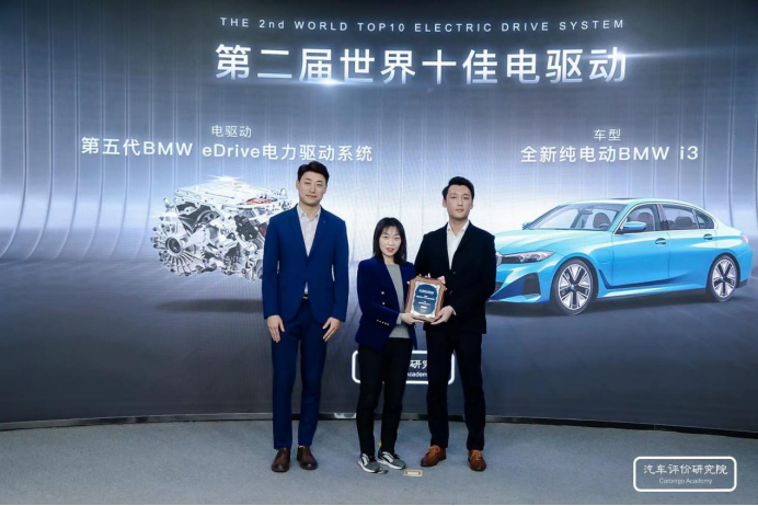 世界十佳動(dòng)力系統(tǒng)評委會秘書長孫浩然、汽車評價(jià)研究院副院長李鏑鋒為BMW企業(yè)代表頒獎(jiǎng)
