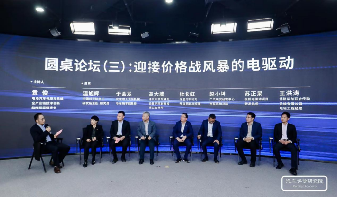 在電動(dòng)汽車電驅(qū)動(dòng)系統(tǒng)全產(chǎn)業(yè)鏈技術(shù)創(chuàng)新戰(zhàn)略聯(lián)盟理事長貢俊的主持下,中國科學(xué)院電工研究所主任、研究員溫旭輝,北京理工大學(xué)機(jī)械與車輛學(xué)院教授于會龍,清華大學(xué)車輛與運(yùn)載學(xué)院副教授、博士生導(dǎo)師高大威,深藍(lán)汽車動(dòng)力開發(fā)部副總經(jīng)理杜長虹,廣汽埃安研發(fā)中心電驅(qū)系統(tǒng)總監(jiān)趙小坤,極狐電驅(qū)動(dòng)項(xiàng)目研發(fā)總師蘇正杲,博格華納聯(lián)合傳動(dòng)系統(tǒng)有限公司電驅(qū)工程經(jīng)理王洪濤等嘉賓,圍繞“迎接價(jià)格戰(zhàn)風(fēng)暴的電驅(qū)動(dòng)”這一主題進(jìn)行了交流討論。
