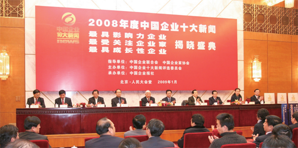 2009年1月,北京人民大會(huì)堂,2008年度中國(guó)企業(yè)十大新聞發(fā)布活動(dòng)隆重舉辦。